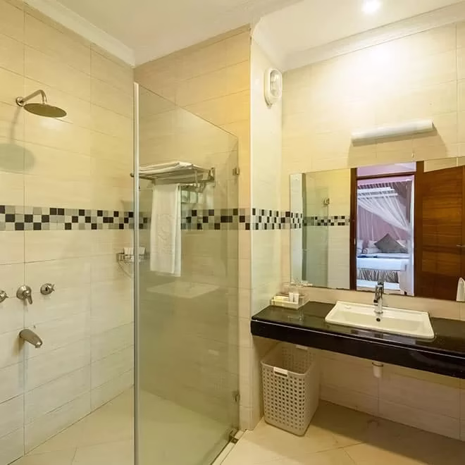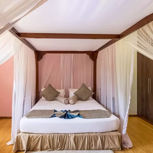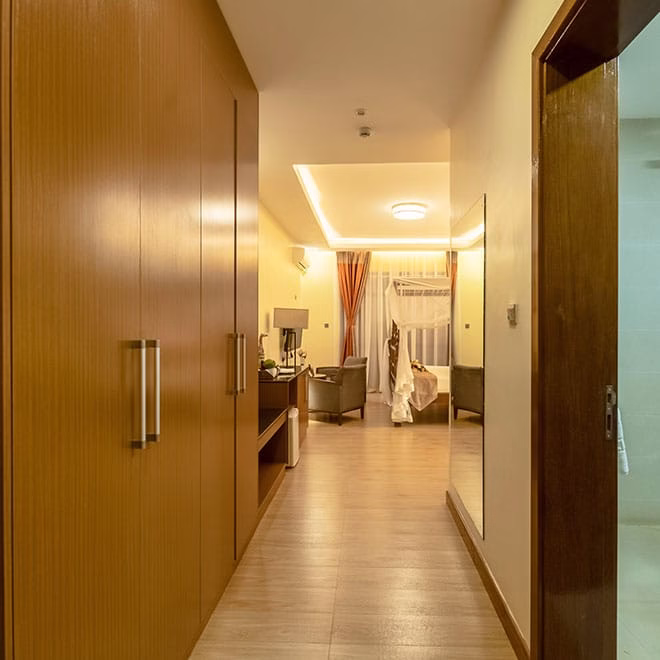 With 56 well-appointed accommodation rooms, with common features in all the rooms; Wi-Fi, air-conditioning, mini fridges, safety deposit box, tea/ coffee maker, HD- Flat screen TV, writing pad & pen, free bottles of water, study desk, luggage rack, wardrobes & towels, mosquito nets, free toiletries and hair dryer: