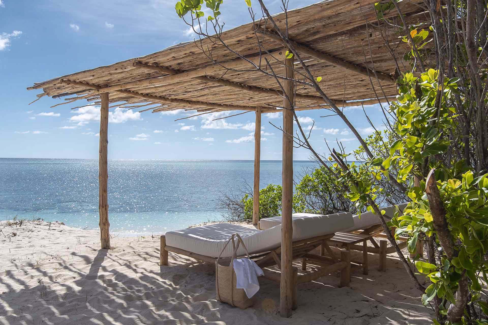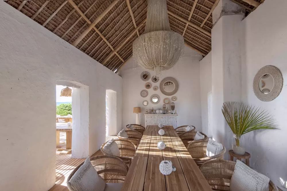 10 eco-friendly private beach villas set along the sandy shore; each villa is open at the front to capture the uninterrupted ocean view, the construction used traditional, natural material (sustainable wood), makuti (palm leaves and thatch. The rooms are ensuite bathroom, with an out-door shower, double washbasin, veranda with a hammock and a sitting area.