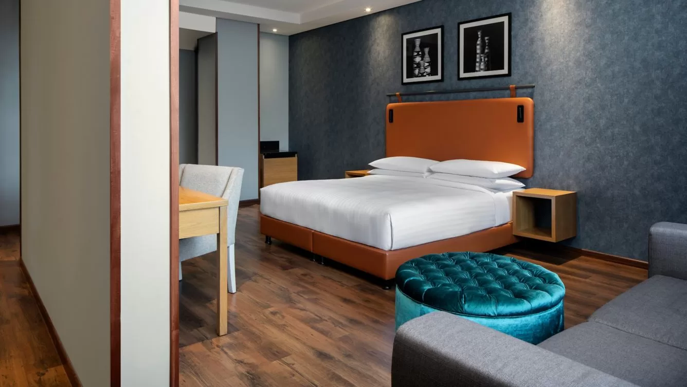 Junior Suite: 1 King, Mini fridge, 36sqm/387sqft-38sqm/409sqft, Living/sitting area, Wireless internet, complimentary, Wired internet, complimentary, Coffee/tea maker, 55in/140cm flatscreen TV.