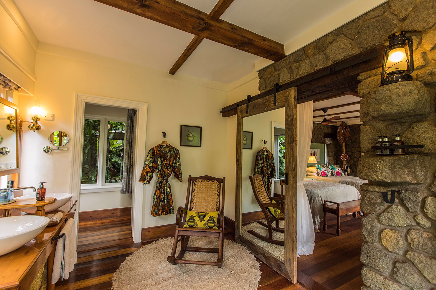 17 One-bedroom cottages: twin queen beds or king-sized, Wi-Fi, Wake Call, Extra Bed, Housekeeping, Laundry Service, Personal Safe, Mosquito Net, In-room fireplace, indoor bath, living area, International Plug Points/USB charging port, indoor and outdoor shower, terrace, Yoga Mat, Hairdryer.