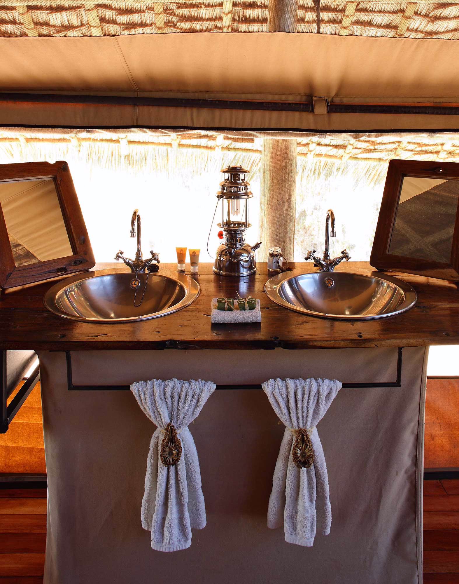 The eight large and well-appointed tented suites are built on raised wooden platforms, under enormous thatched roofs that encompass a spacious private deck overlooking the dry riverbed. As the camp is unfenced, children over the age of 6 years are welcome, whilst children from 10 years and above for resident bookings are welcome, however all children are the responsibility of their parents or guardians at all times.