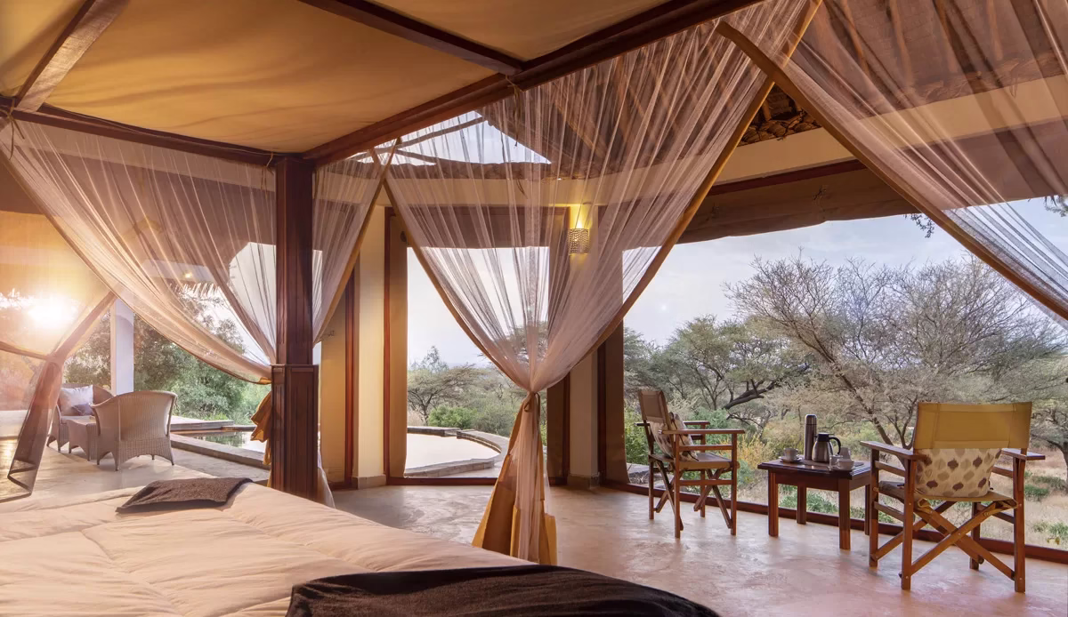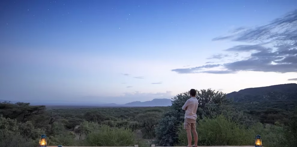 Located in a remote location on the lower slopes of the Great Rift Valley escarpment, southern Kenya, not far from the intensely alkaline lakes Magadi and Natron, with views of Shompole Mountain in front. The lodge sits on a ridge at the foot of the escarpment in the 25,000 hectare Olkeramatian Conservancy which is owned by the local Masai community.
