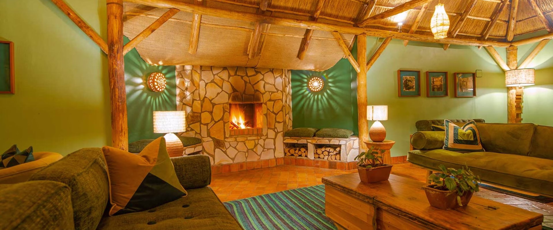 The main lodge has a spacious restaurant terrace, a well-stocked bar, massage parlor, offers complimentary room service, a secluded lounge area with a small library furnished with comfortable large chairs, sofas, sofa cushions, an area for evening campfire, free laundry service and Wi-Fi in the public areas.
