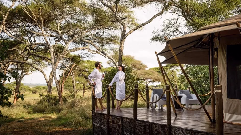 Twelve luxurious canvas pavilions, feature wood-floored open plan rooms, staged with elegant neutral-toned interiors, with matching safari-chic furnishing with rich African textiles, and blending seamlessly with the raw and natural beauty of Tanzania’s cinematic savannah.