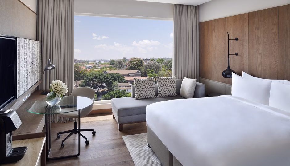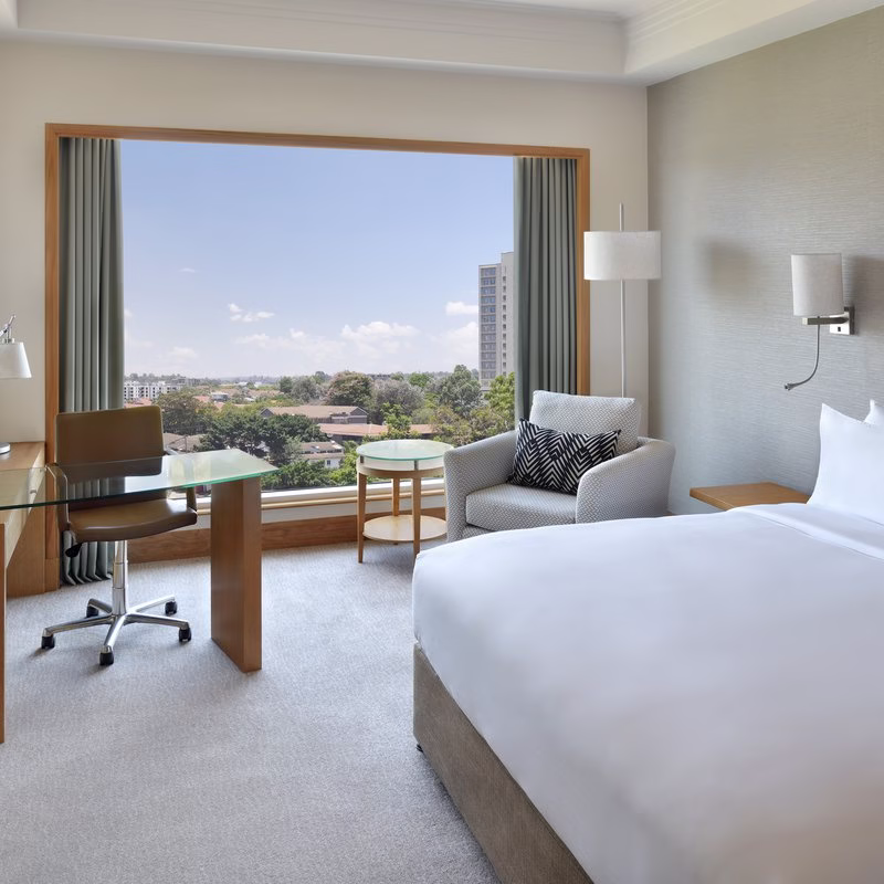 Executive Suite: have direct access to Club Lounge with its spectacular sky view of Nairobi, and range of exclusive services which include complimentary gourmet breakfast, dedicated areas for work and relaxation, two state-of-the-art boardrooms, express check-in and check-out and complimentary food and beverages.