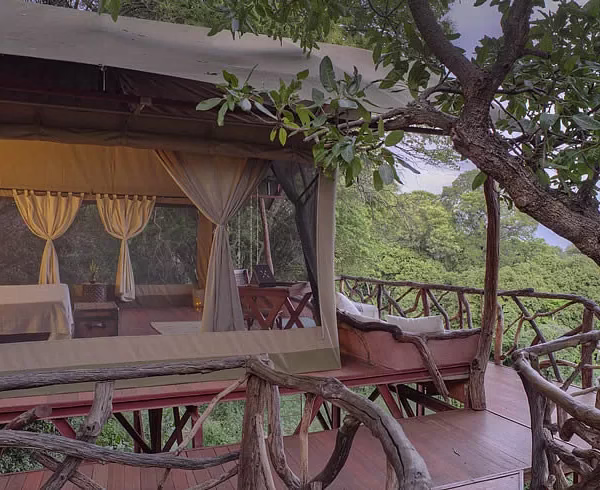 Total of 8 luxury tents, 2 of which are close together (not interconnected) making a Family Unit. Sarara Tree has six tents (all of which can be configured to be either double or twin) with an ensuite bathroom (lavatory and hand basin) and an adjacent shower open to the skies within Sarara-style walls. Every tent has a deck with a seating area by day that can also be a stunning star bed by night. Raised walkways through the canopy connect the tents to the reception area.