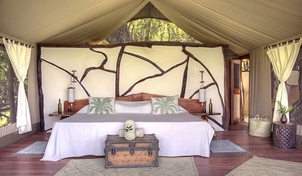 All meals and beverages are included during your stay and meet every dietary need, Soft drinks, local beers, non-premium wines, and spirits are included, eight tented rooms with indoor toilets and outdoor, solar-heated showers, one family room with joined walkway, catering for a family of 4 and children aged 6 years and older are welcome, No mosquito nets, No hair dryers.