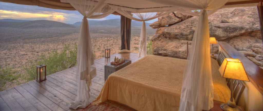 Open all year round, and the only Lodge in over 200, 000 acres of unspoiled wilderness of Kalama Conservancy. Saruni Samburu is the first and most exclusive design lodge of its kind in Kenya. By visiting Saruni Samburu, you are directly giving back to the community who protects this beautiful land, improving their quality of life, while at the same time encouraging the purpose for conservation.