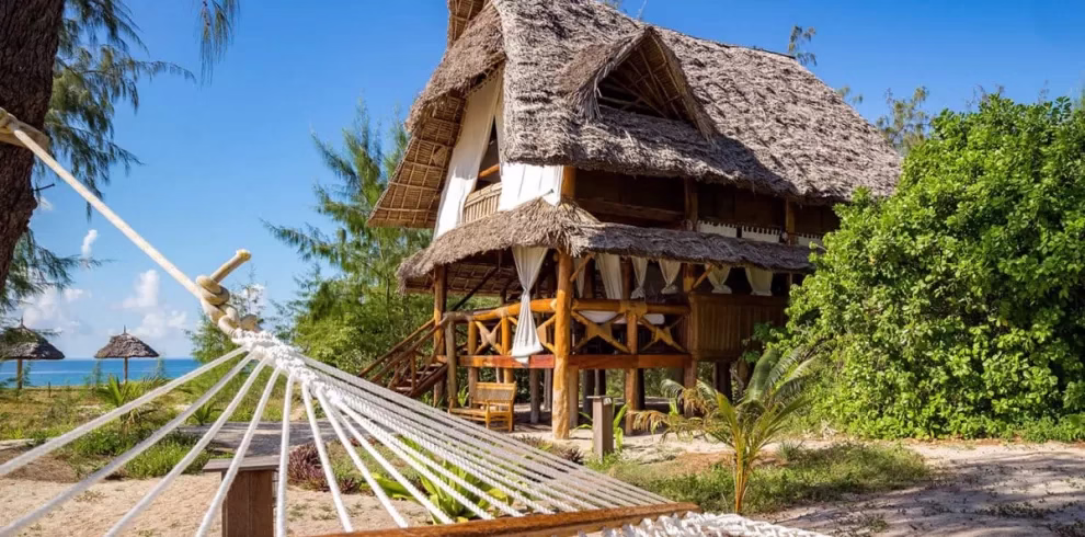 A secluded island with a single luxurious villa and two traditional Bandas (beach chalets) in the Indian Ocean, off the east coast of Tanzania. Situated in your own marine reserve, you can swim with the gentlest giant of the ocean, the whale shark, and watch sea turtles nesting. Here, you can rest, rejuvenate and enjoy adventure sports in a world where shades of turquoise infuse your days and tropical spices your nights.