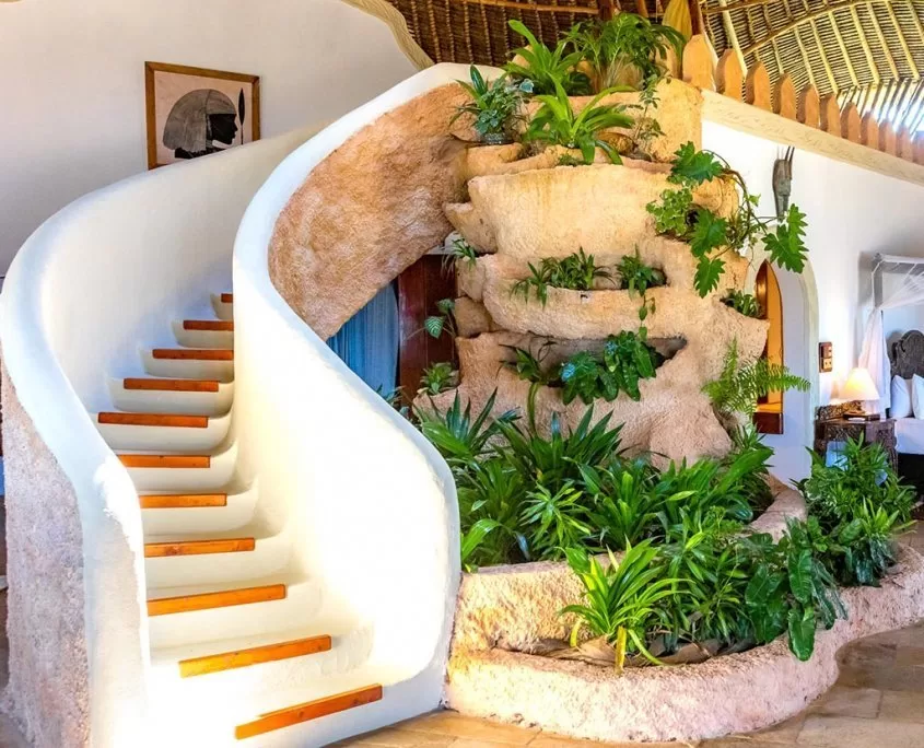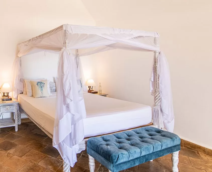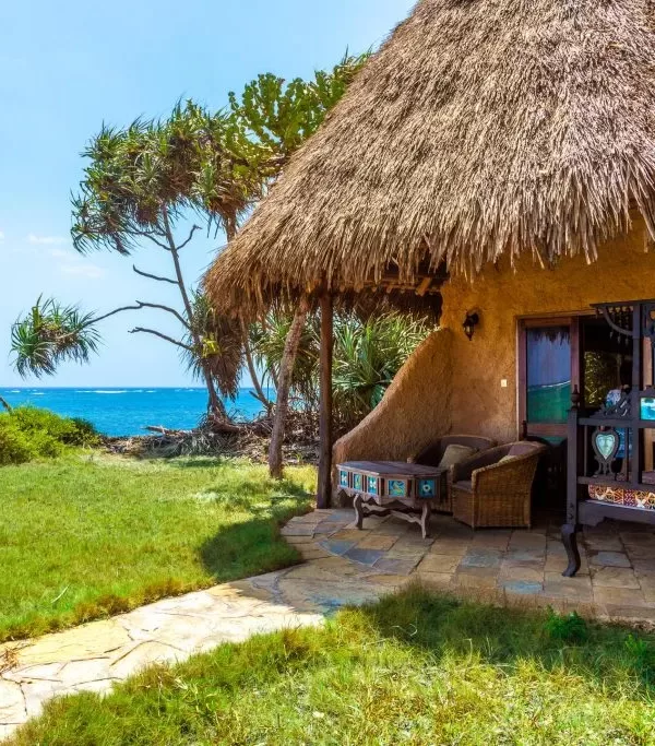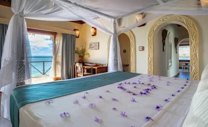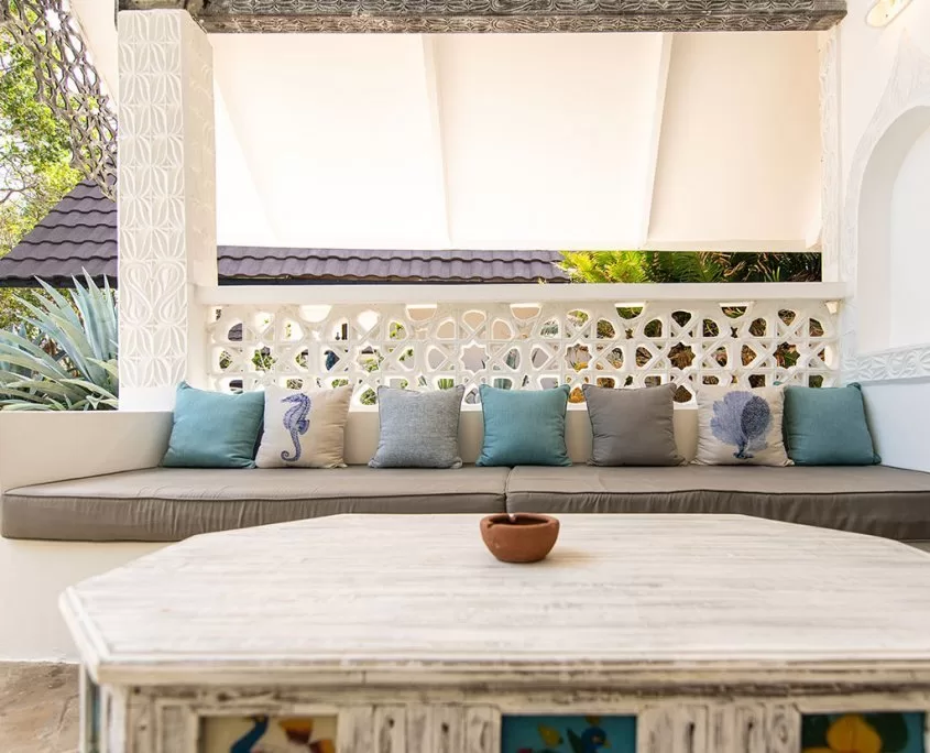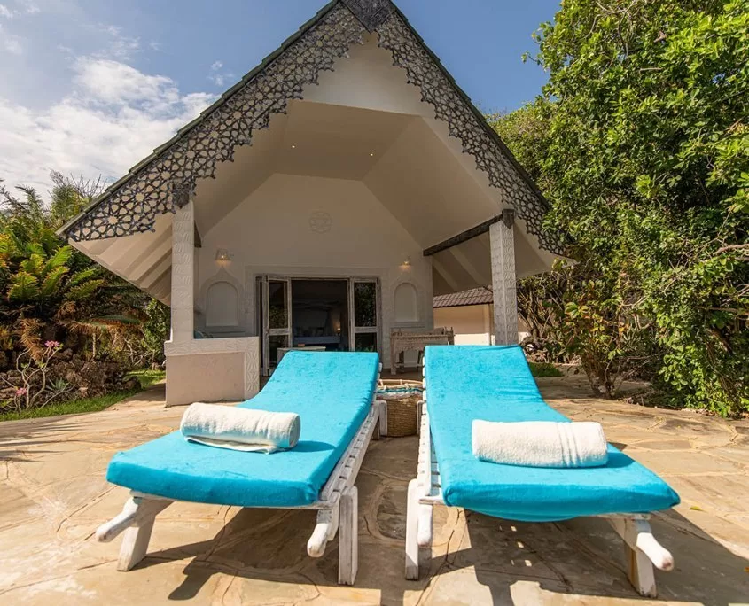 Lagoon Banda: 14 rooms (in Swahili: small house) as individual bungalows, palm thatched with large bathrooms and view overlooking the Chale Channel. A small private garden area with sun loungers, a terrace with Swahili daybeds.